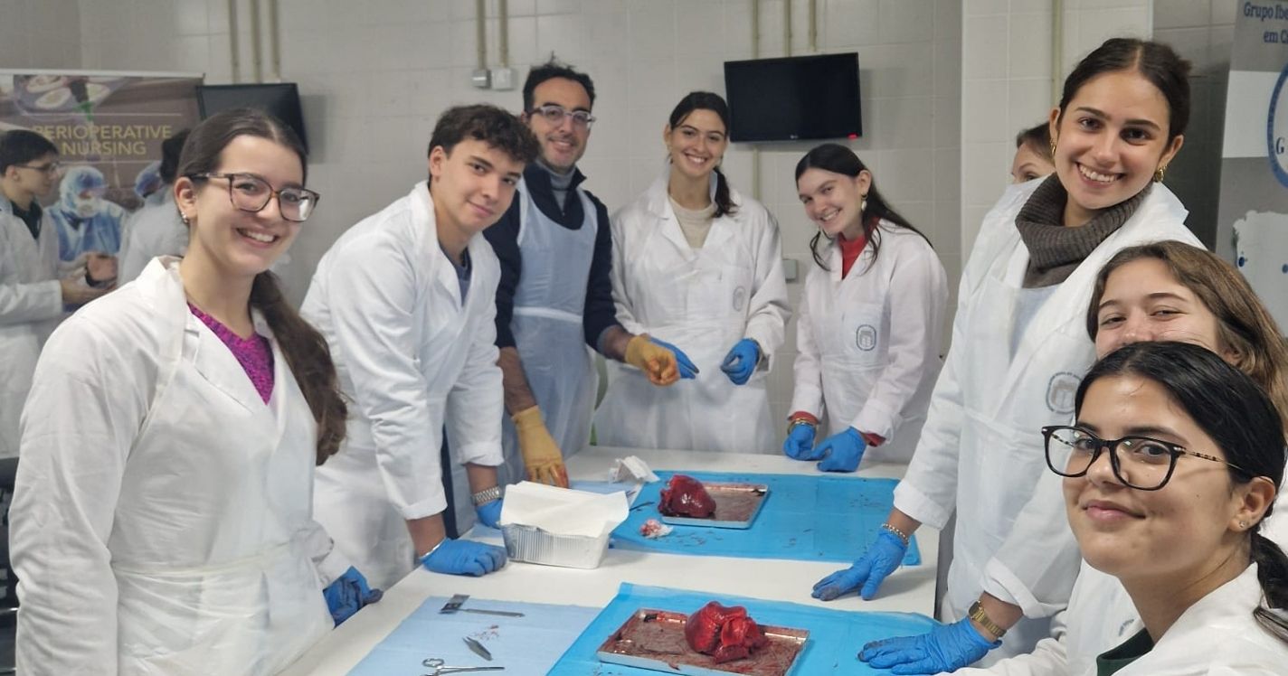Durante a sessão, foi possível explorar de forma detalhada a anatomia externa e interna do coração, proporcionando um contacto direto com as suas principais estruturas, relações anatómicas e organização espacial, bem como uma melhor compreensão do seu papel central na fisiologia humana.